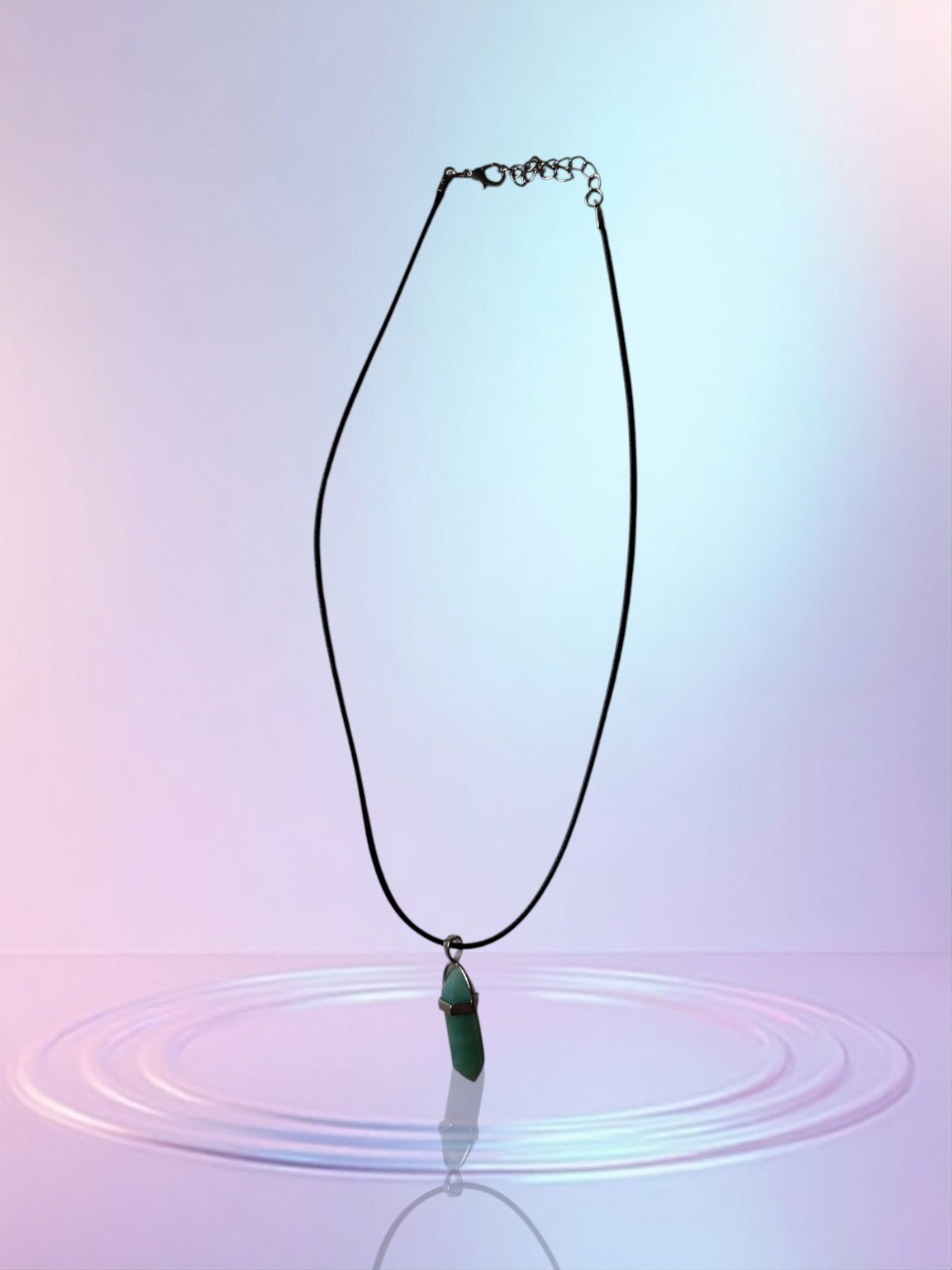 Diese schlichte und zugleich elegante Kette besteht aus einem weichen schwarzen Kunstlederband und einer hochwertigen Silberöse, die den Amazonit-Anhänger dezent umrahmt.