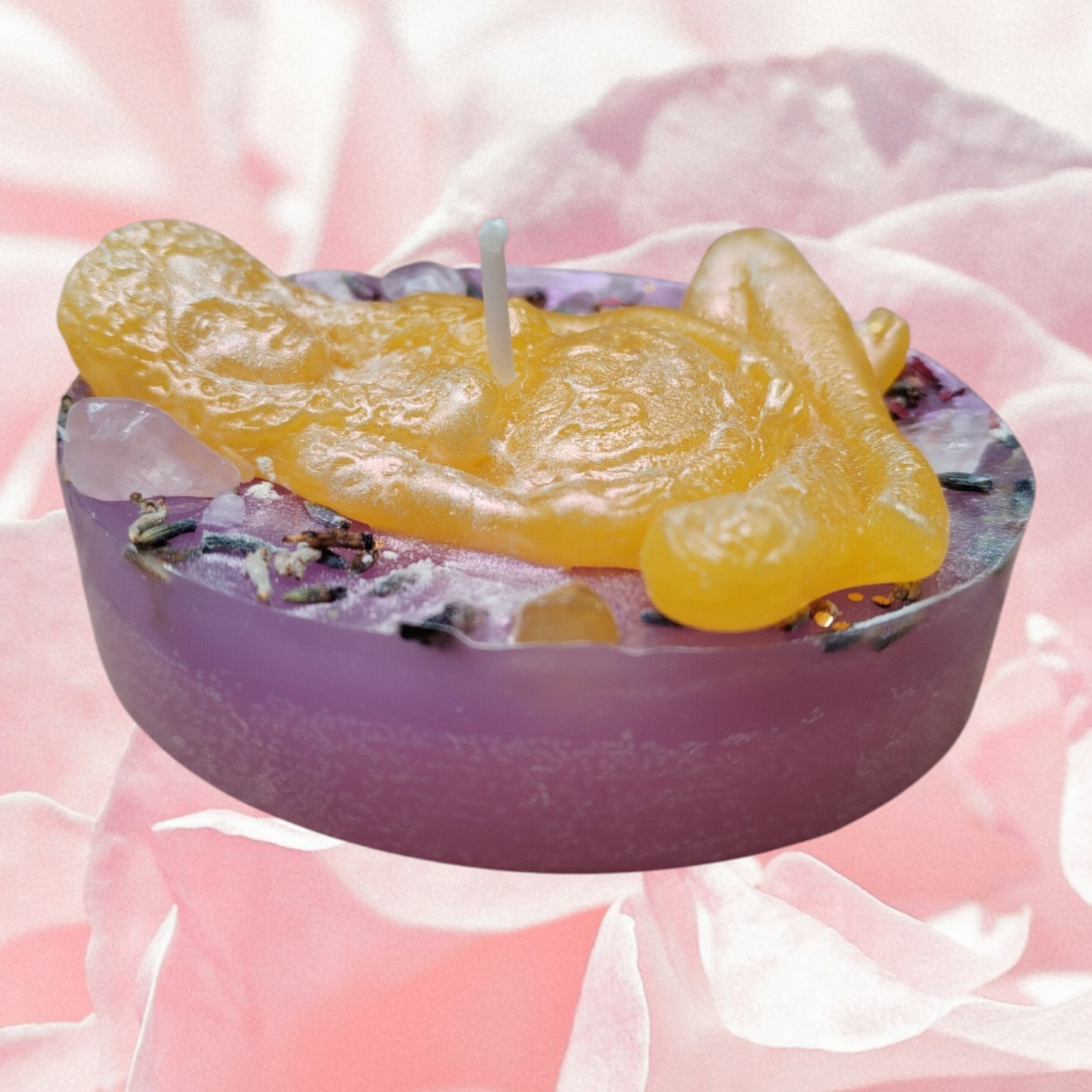 Dekoration: Bio-Lavendelblüten, Bio-Rosenblüten, Amethyst-Steinchen und Goldpuder