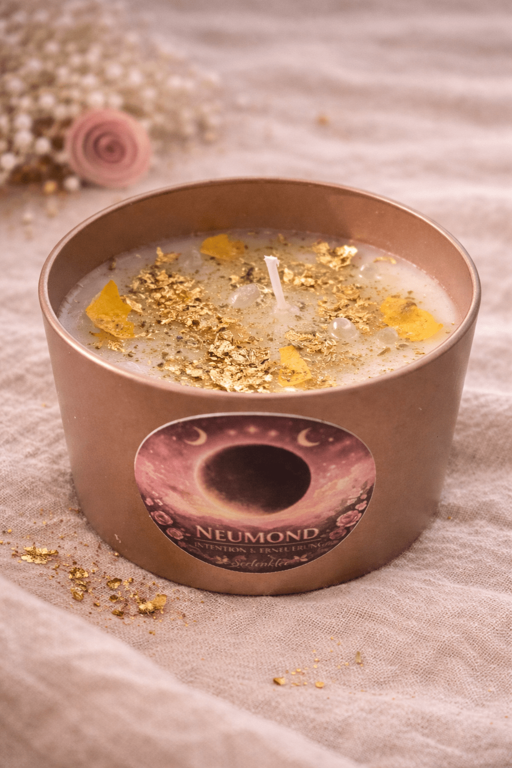 Diese Neumondkerze wurde für Neubeginn, Manifestation und frische Ausrichtung gestaltet.